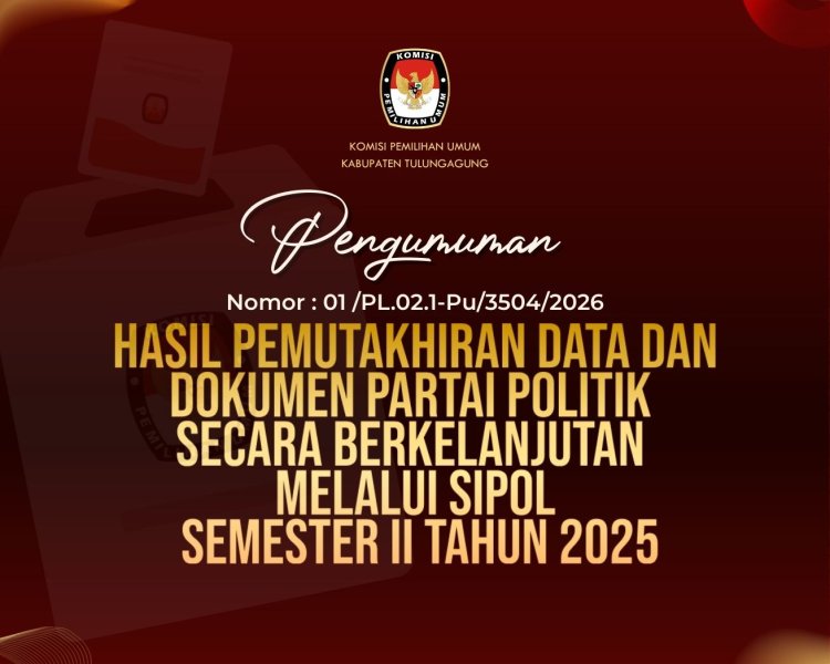 Berdasarkan hasil verifikasi terhadap data dan dokumen pemutakhiran Partai Politik, dengan ini disampaikan hasil pemutakhiran data dan dokumen Partai Politik secara berkelanjutan melalui Sipol Semester II Tahun 2025