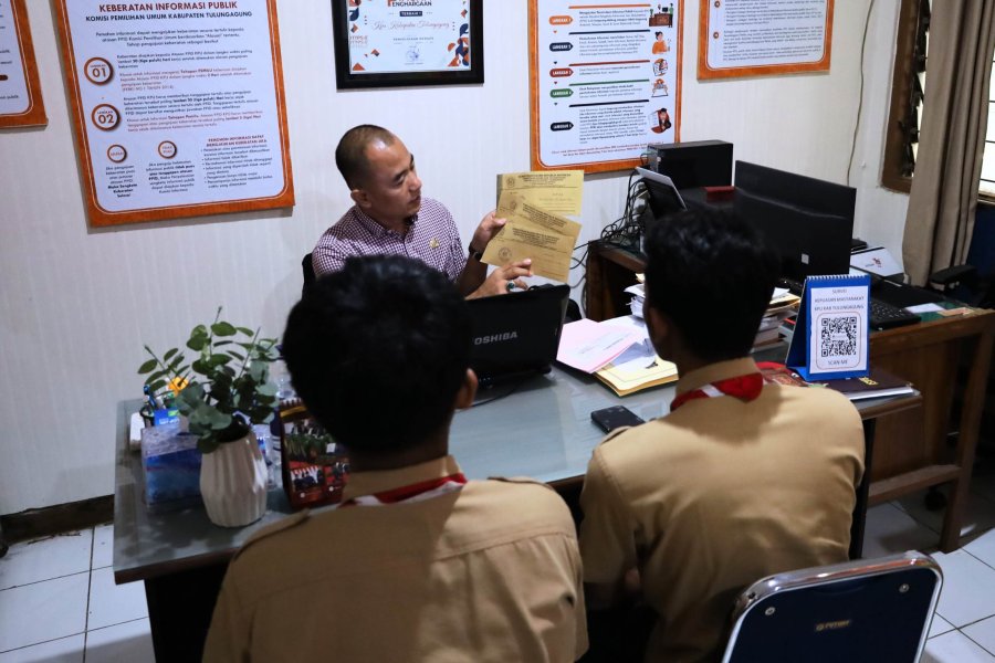 Tulungagung (kpu-tulungagungkab.go.id) PPID KPU Kabupaten Tulungagung kembali memberikan pelayan informasi bagi masyarakat yang yang datang secara langsung di kantor yang beralamatkan di Jl. KHR Abdul Fatah IV No. 3 Tulungagung, Kamis, (16/10/2025), Desk PPID KPU Kabupaten Tulungagung kedatangan 2 siswa sekolah dari MAN 1 Tulungagung pada pukul 10:30 WIB diterima secara langsung dan disambut dengan baik oleh petugas di ruang Desk PPID KPU Tulungagung.