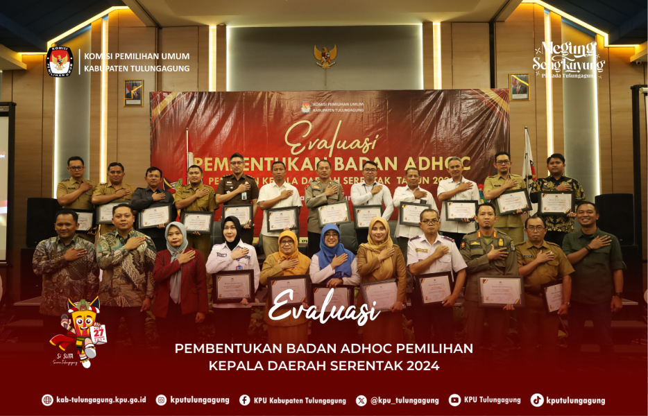 Adakan Evaluasi Kinerja Badan Adhoc Pilkada 2024: KPU Tulungagung Berikan Penghargaan kepada Instansi Terkait