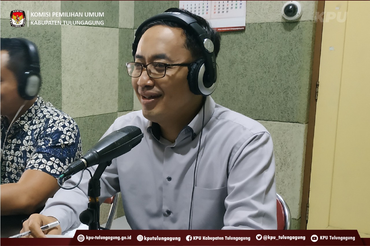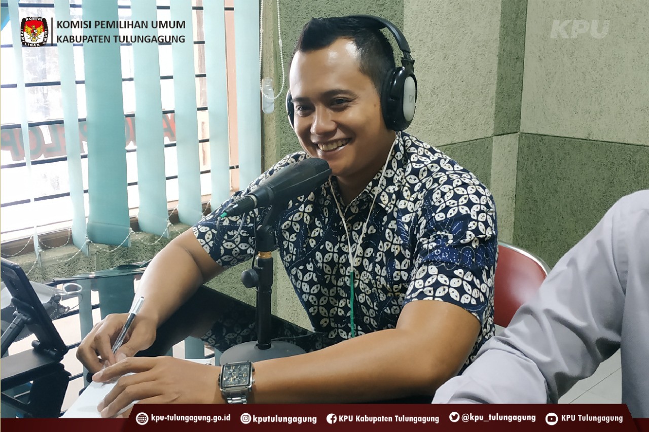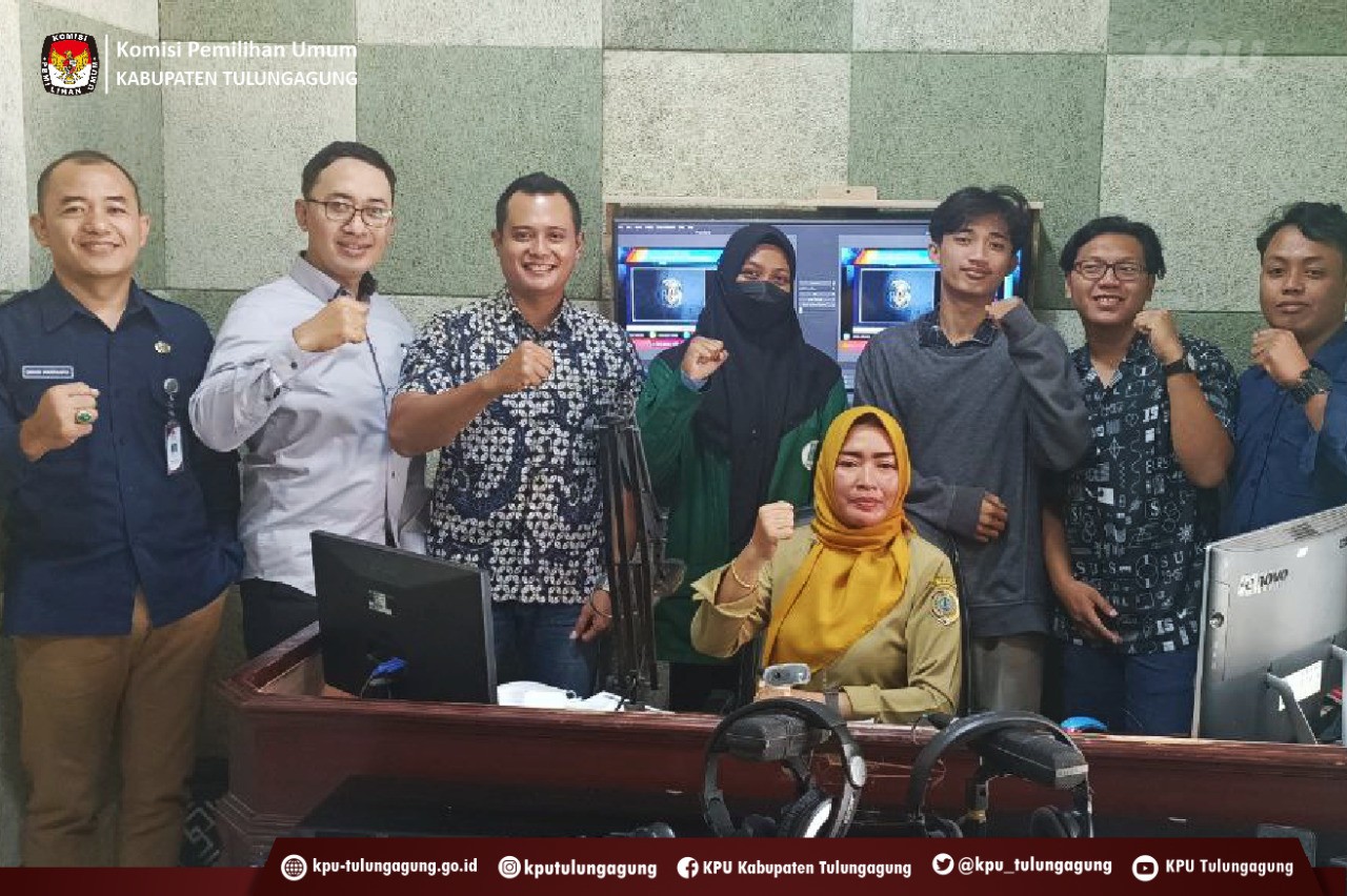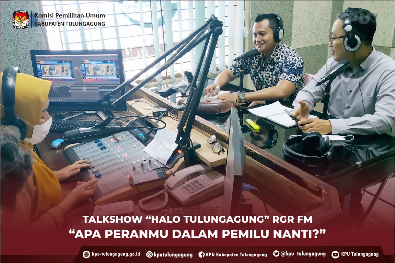 Tulungagung (kab-tulungagung.kpu.go.id) “Selamat pagii..sobat RGR dimanapun anda berada… kembali lagi bersama saya Andri. Kali ini kita akan berbincang dengan dengan tamu special, bapak-bapak dari KPU Tulungagung dan hari ini saya juga ditemani oleh teman-teman mahasiswa magang dari prodi Komunikasi KPI UIN SATU”, ucap radio announcer acara Radio Talk Show Hallo Tulungagung RGR FM Andriani ,mengawali berbincangan pagi itu. Talkshow radio Halo Tulungagug rutin dilaksanakan oleh KPU Kabupaten Tulungagung setiap 2 minggu sekali bergiliran dengan radio swasta lainya yang ada di Kabupaten Tulungagung. Kali ini Selasa (12/07/2022) giliran KPU Tulungagung mengisi talkshow seputar kepemiluan bersama Radio Guyub Rukun On Air di 90,1 RGR FM tepat pada pukul 10.00 WIB.