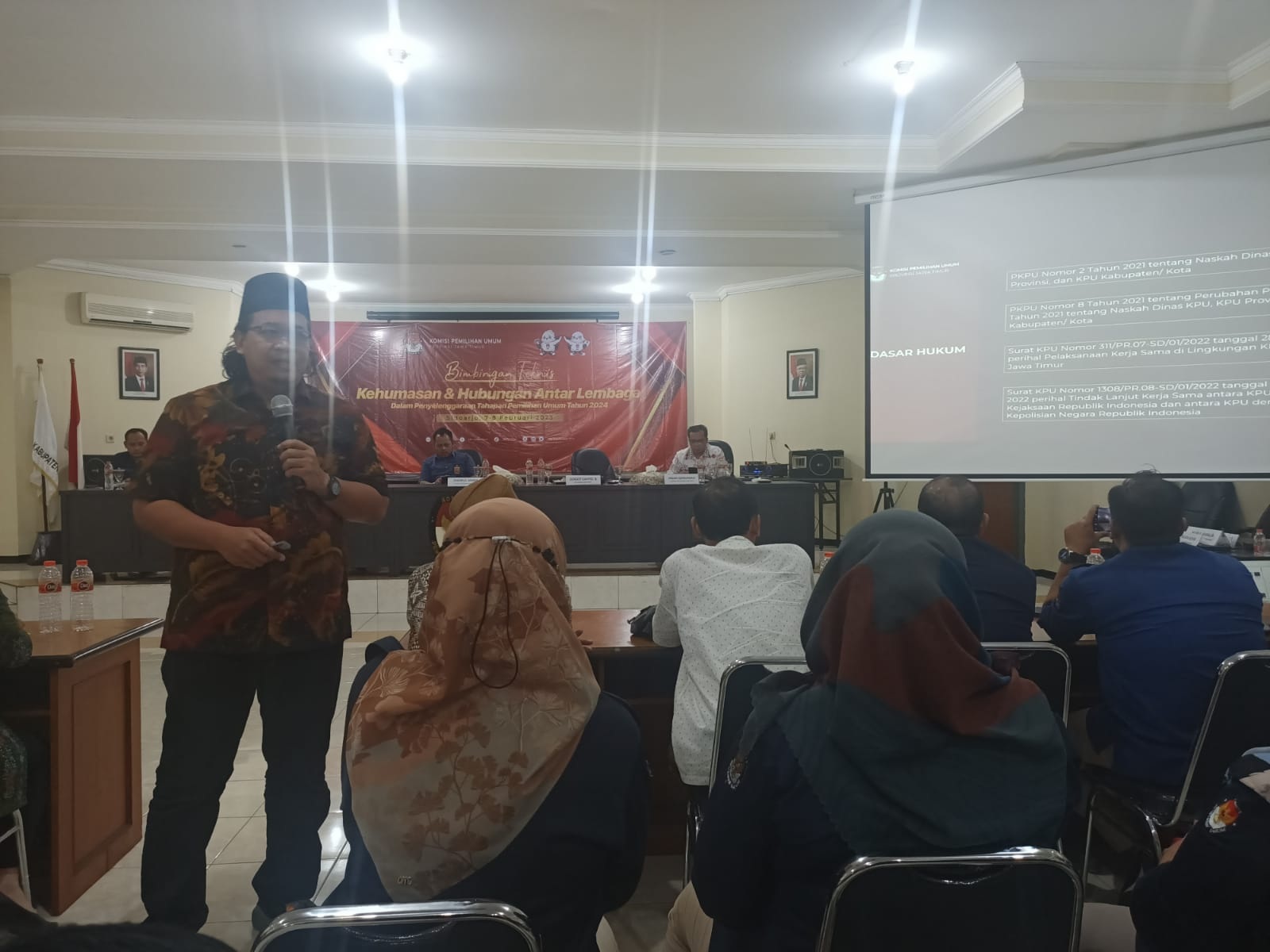 BANGUN CITRA POSITF LEMBAGA MELALUI MEDSOS, DISAMPAIKAN CHOIRUL ANAM DALAM PEMBUKAAN BIMTEK KEHUMASAN DAN HUBUNGAN ANTAR LEMBAGA DALAM PENYELENGGARAAN PEMILU 2024.
