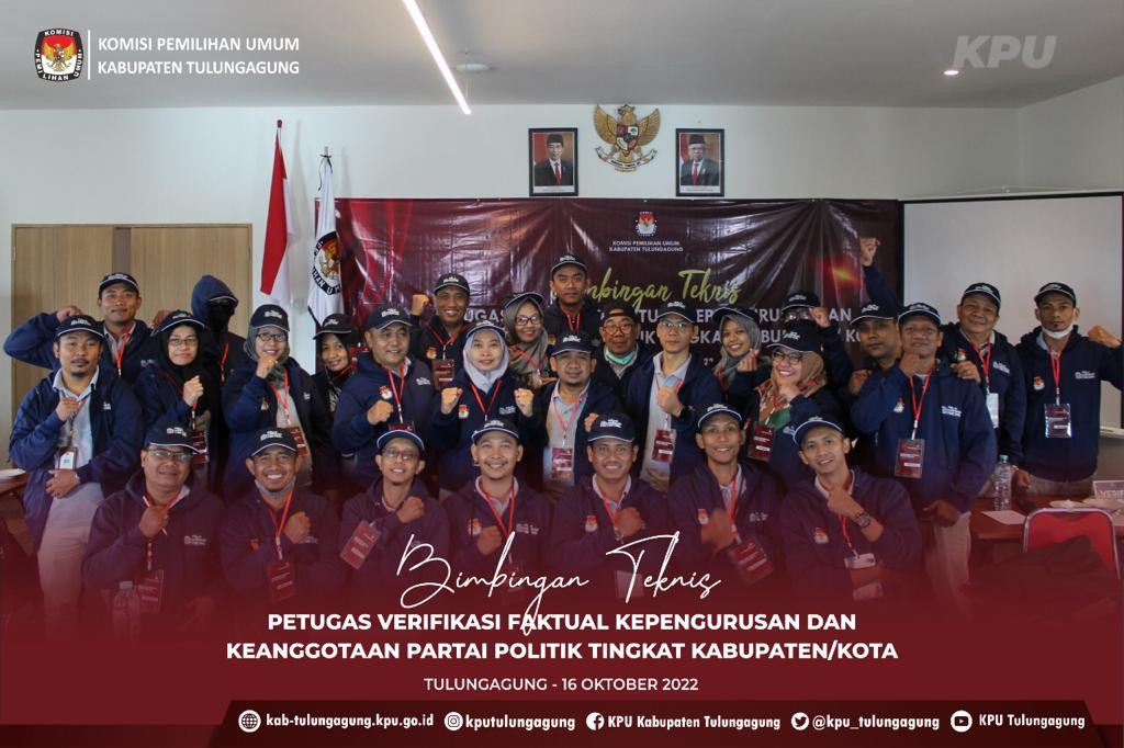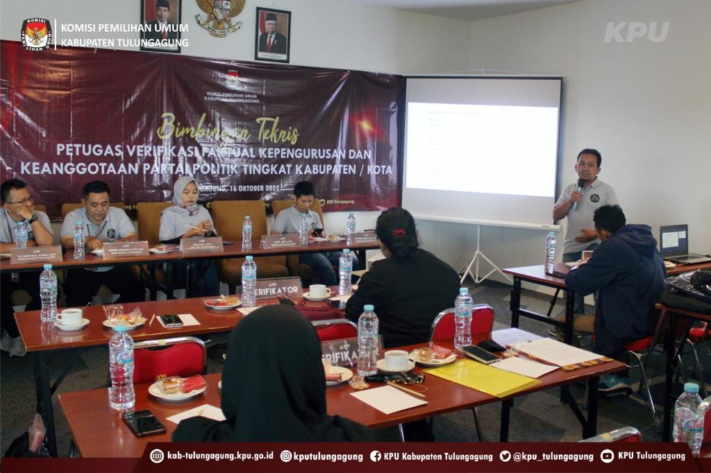 Pembekalan bagi seluruh petugas verifikator ini menjadi penting mengingat nantinya mereka semua yang menjadi ujung tombak KPU Kabupaten Tulungagung dalam melaksanakan tahapan verifikasi faktual kepengurusan dan keanggotaan partai politik calon peserta pemilu tahun 2024, ucap Arif.