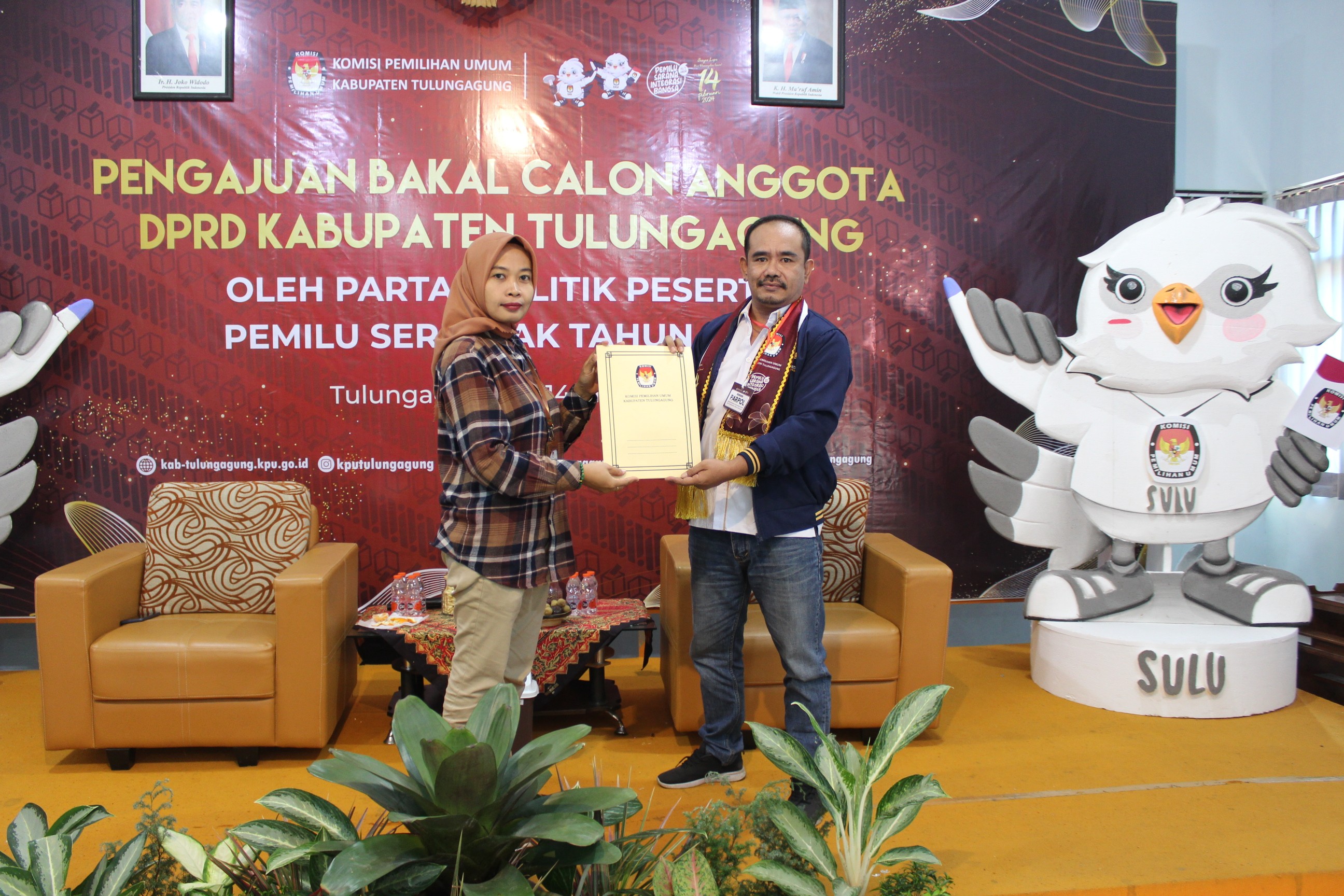 Ketua KPU Kabupaten Tulungagung, Susanah mengatakan bahwa, dihari ke-14 ini pengajuan berkas pendaftaran Bakal Calon Anggota DPRD dari DPC. Partai Garuda Kabupaten Tulungagung yang diterimanya dinyatakan lengkap dan diterima, hal itu sampaikan oleh Susanah saat menyerahkan Berita Acara Penerimaan Pengajuan Bakal calon Anggota DPR/DPRD Provinsi/ DPRD Kabupaten/Kota kepada Ketua DPC. Partai Garuda.
