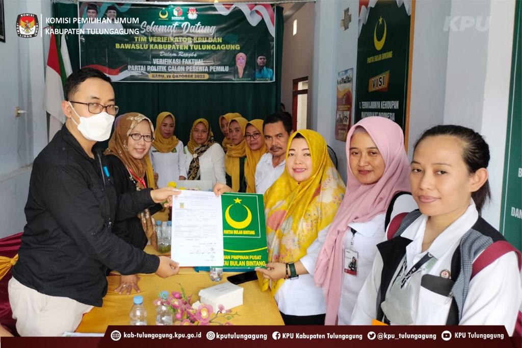 Komisi Pemilihan Umum Kabupaten Tulungagung lakukan verifikasi faktual (verfak) kepengurusan Partai Bulan Bintang(19/10/2022).