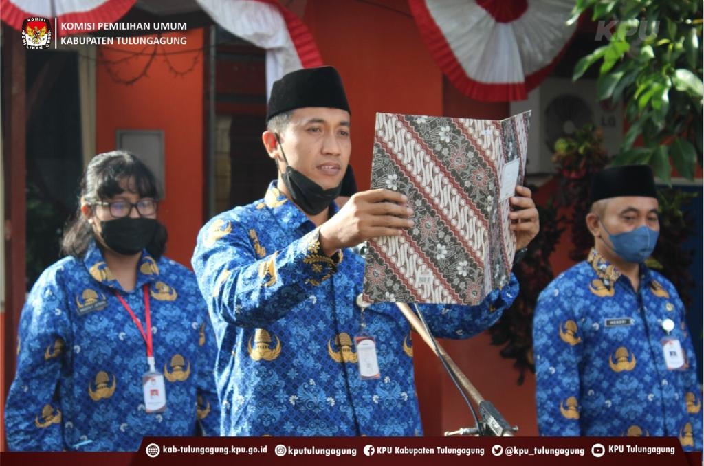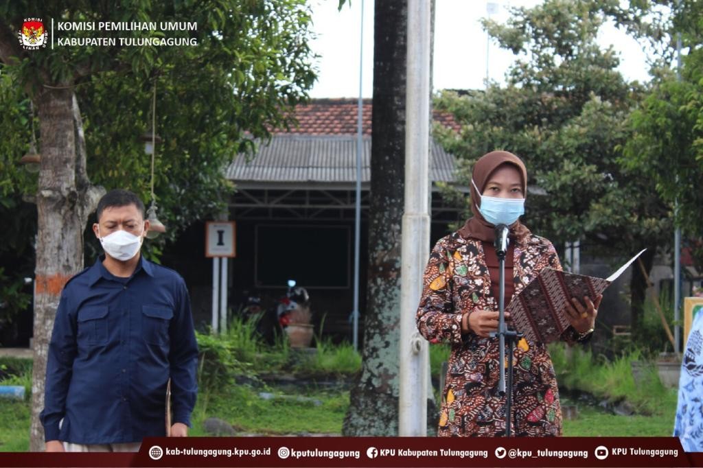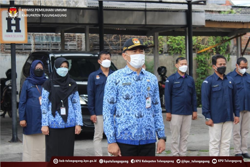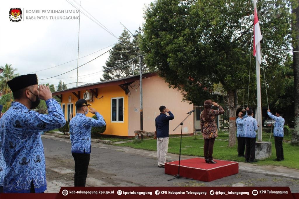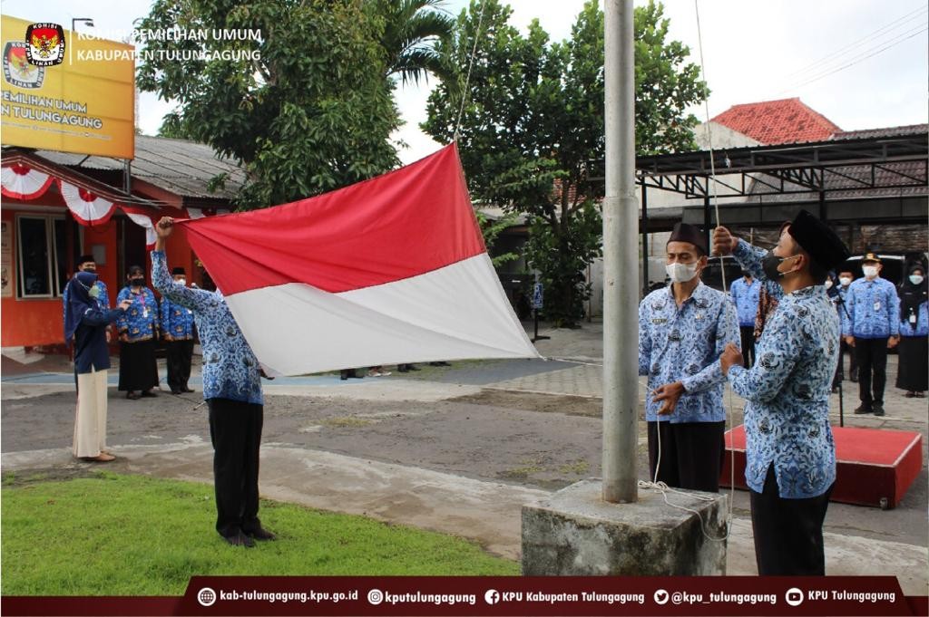 Upacara Bendera dilaksanakan dihalaman kantor Komisi Pemilian Umum Kabupaten Tulungagung jalan KHR Abdul Fatah IV Nomor 3 Tulungagung.