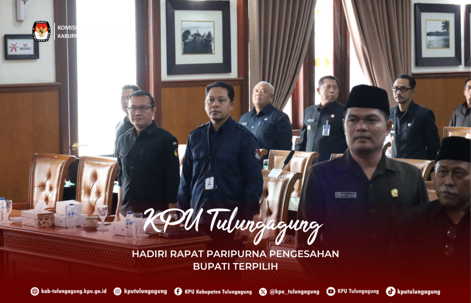 Tulungagung (https://kab-tulungagung.kpu.go.id/) – Ketua Komisi Pemilihan Umum (KPU) Tulungagung menghadiri Rapat Paripurna yang diselenggarakan oleh DPRD Kabupaten Tulungagung dalam rangka pengusulan pengesahan pengangkatan Bupati dan Wakil Bupati Tulungagung terpilih hasil Pilkada Serentak Tahun 2024. Acara ini berlangsung di Graha Wicaksana pada Selasa, 11 Februari 2025.