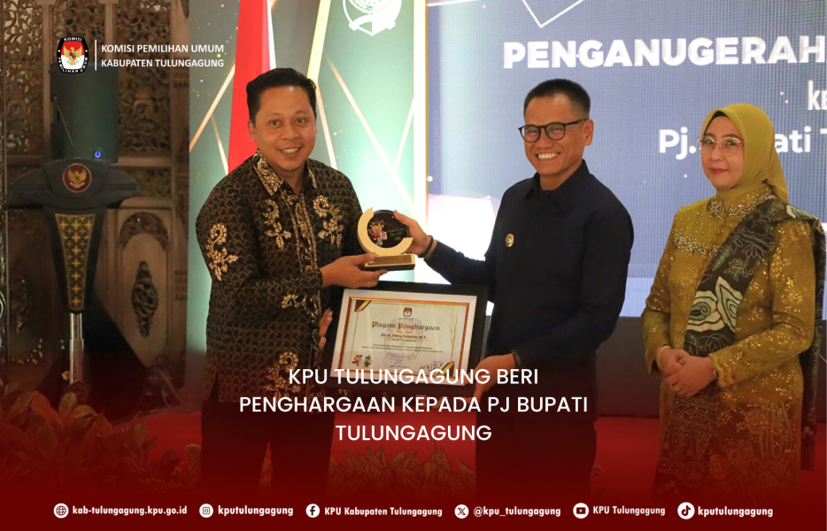 Tulungagung, 12 Februari 2025 (https://kab-tulungagung.kpu.go.id/) – Ketua Komisi Pemilihan Umum (KPU) Tulungagung menghadiri acara penganugerahan penghargaan kepada Penjabat (Pj) Bupati Tulungagung, Heru Suseno. Acara ini berlangsung di Pendopo Kongas Arum Kusumaning Bongso dan dihadiri oleh jajaran Forum Koordinasi Pimpinan Daerah (Forkopimda), Kepala BNNK Tulungagung, Ketua Bawaslu Tulungagung, serta berbagai pihak lainnya.