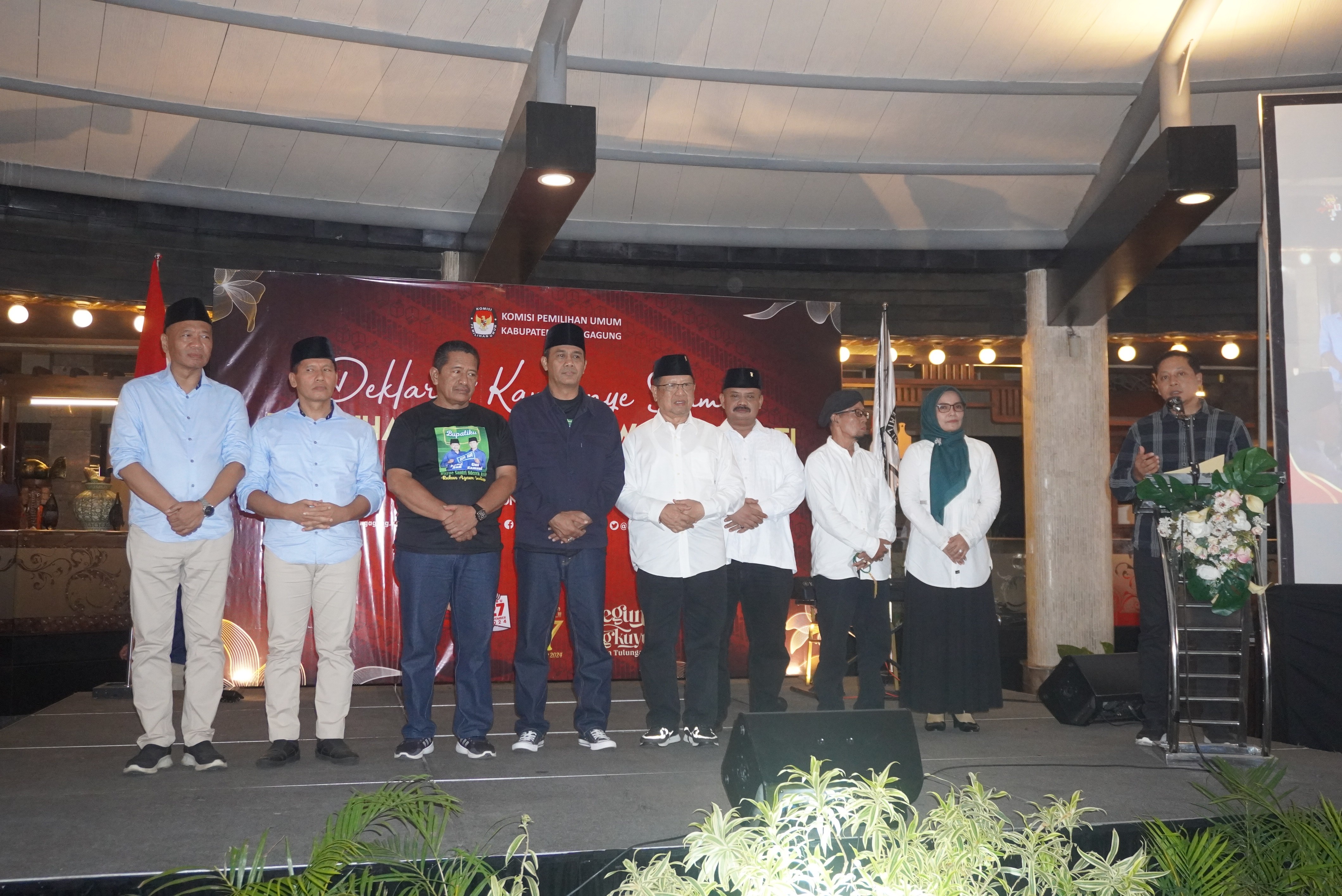 Tulungagung – Komisi Pemilihan Umum (KPU) Kabupaten Tulungagung mengadakan kegiatan deklarasi kampanye damai untuk pemilihan Bupati dan Wakil Bupati Tulungagung 2024. Acara ini berlangsung pada Senin, 24 September 2024, di Crown Victoria Hotel dan melibatkan kolaborasi dengan Badan Narkotika Nasional (BNN) Kabupaten Tulungagung.