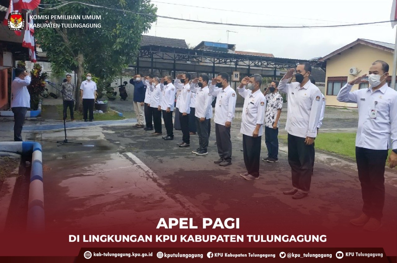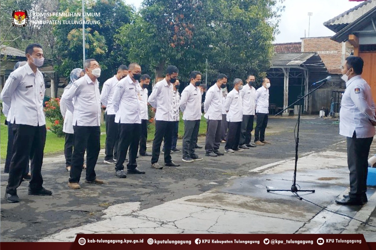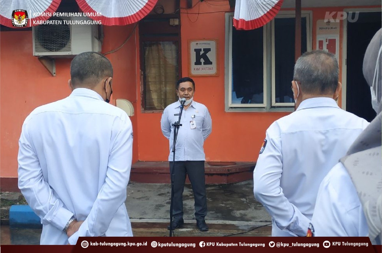 Hendri Afrianto, Sekretaris KPU Kabupaten Tulungagung saat memimpin apel senin pagi,(8/8/2022).