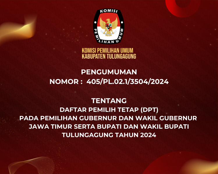 PENGUMUMAN: DAFTAR PEMILIH TETAP PILKADA SERENTAK TAHUN 2024 Minggu, 22 September 2024 10:02 311 UNDUH DISINI Bagikan: Dilihat 311 Kali.