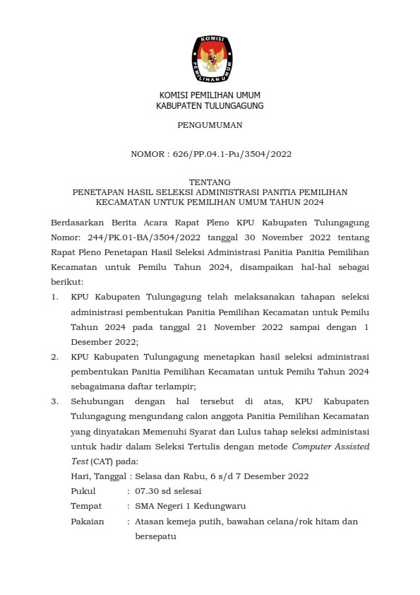 PENGUMUMAN: HASIL SELEKSI ADMINISTRASI CALON PPK PEMILU 2024