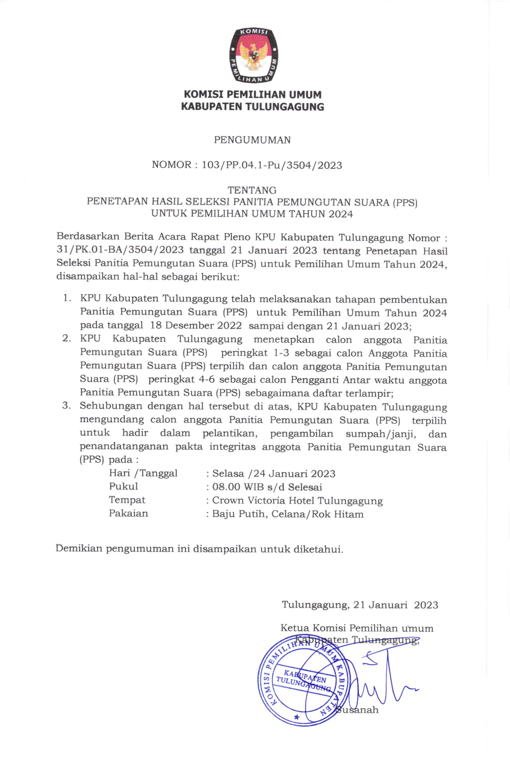 PENGUMUMAN: HASIL SELEKSI PANITIA PEMUNGUTAN SUARA PEMILU 2024