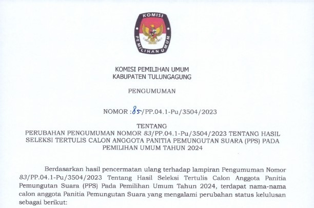 PENGUMUMAN: PERUBAHAN PENGUMUMAN HASIL SELEKSI TERTULIS CALON PPS PEMILU 2024
