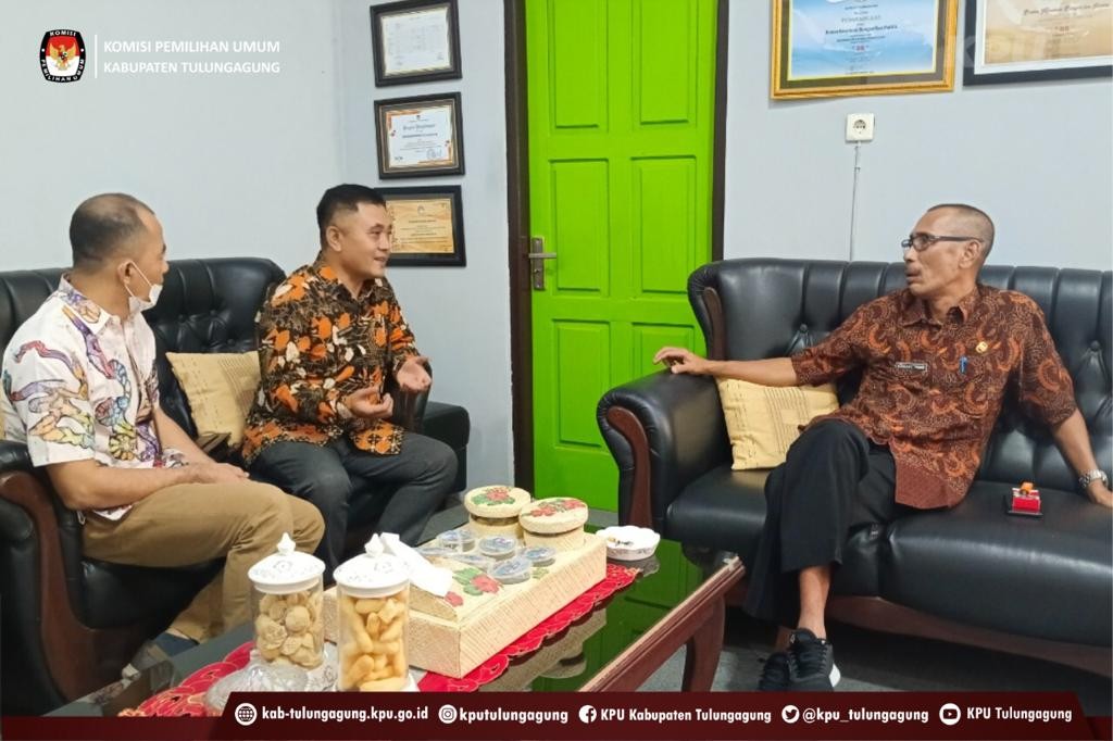 Sekretaris KPU Tulungagung, Hendri Afrianto, S.TP didampingi kasubag teknis penyelenggara pemilu, partisipasi dan humas, David Hartanto, SE., melakukan koordinasi dengan Dinas/ Opd terkait persiapan pembentukan sekretariat PPK. (30/12/2022)