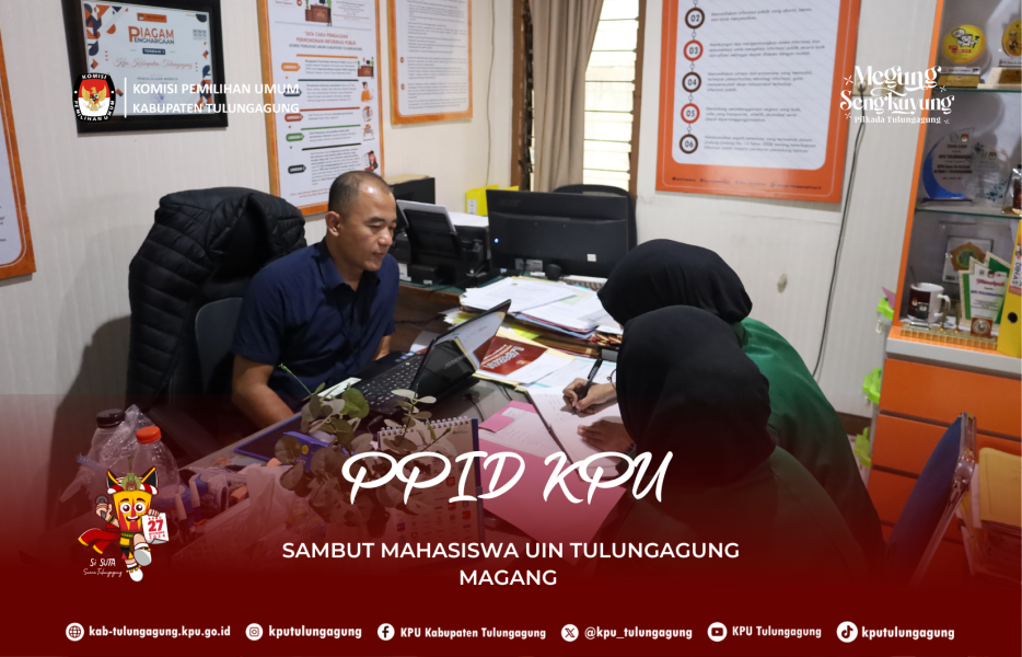 Tulungagung, (https://kab-tulungagung.kpu.go.id/) - 16 Januari 2025 Pusat Pelayanan Informasi dan Dokumentasi (PPID) Komisi Pemilihan Umum (KPU) Kabupaten Tulungagung menerima kunjungan dari dua mahasiswa Fakultas Syariah dan Ilmu Hukum, Program Studi Hukum Tata Negara, Universitas Islam Negeri Sayyid Ali Rahmatullah (UIN SATU) Tulungagung. Kunjungan ini bertujuan untuk mengajukan izin PPL atau magang di lingkungan KPU Tulungagung.