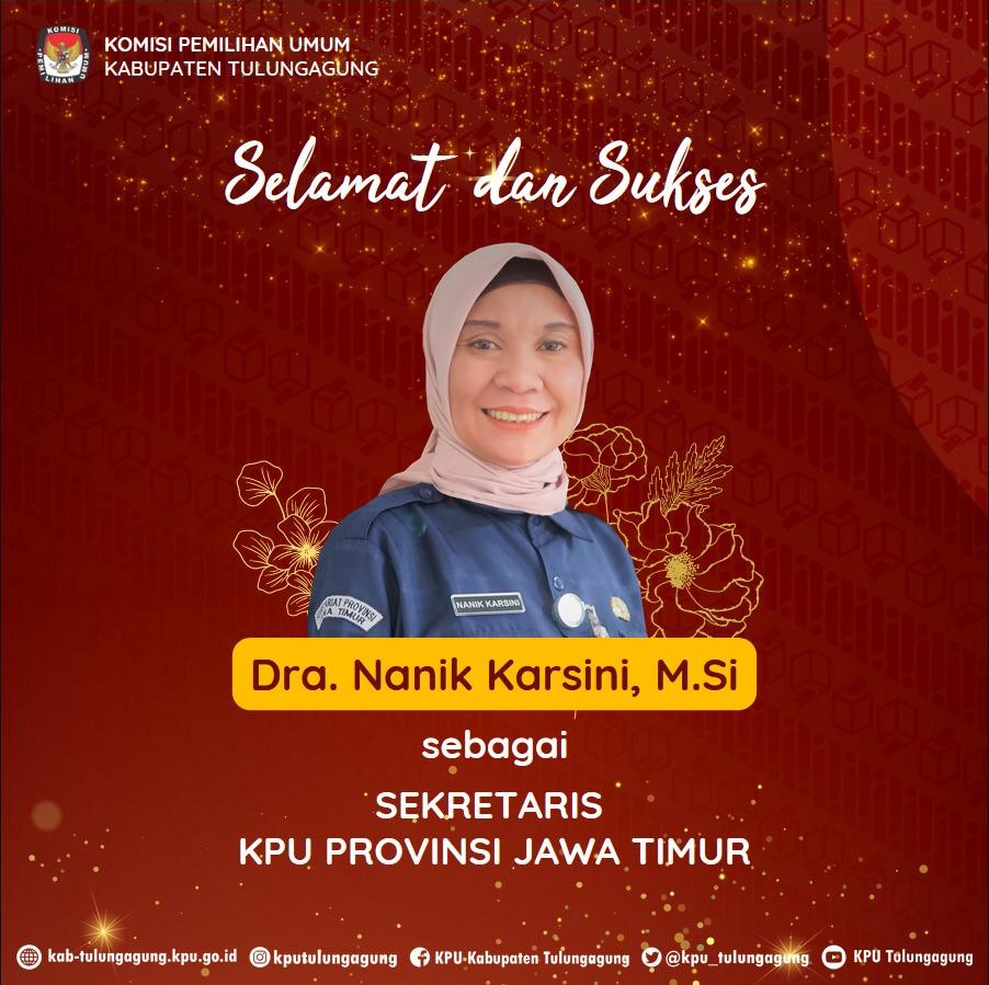 KPU Tulungagung mengucapkan Selamat dan Sukses atas Pengukuhan Kembali sebagai Sekretaris KPU Provinsi Jawa Timur, Dra. Nanik Karsini, M.Si.