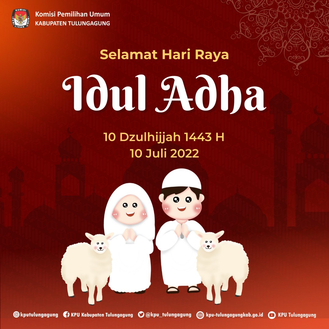 Segenap keluarga besar KPU Kabupaten Tulungagung mengucapkan Selamat Hari Raya Idul Adha 1443H untuk seluruh #TemanPemilih.