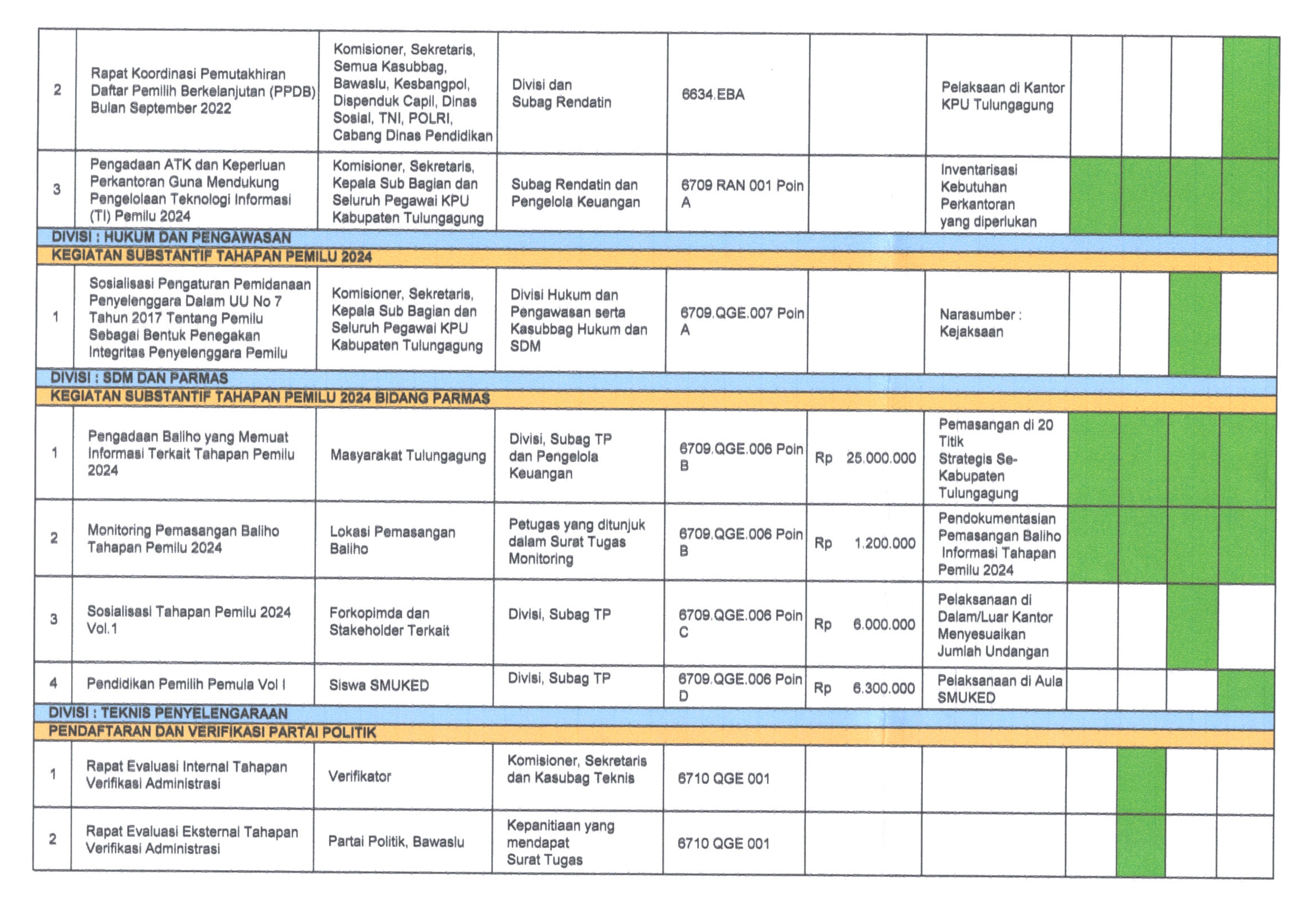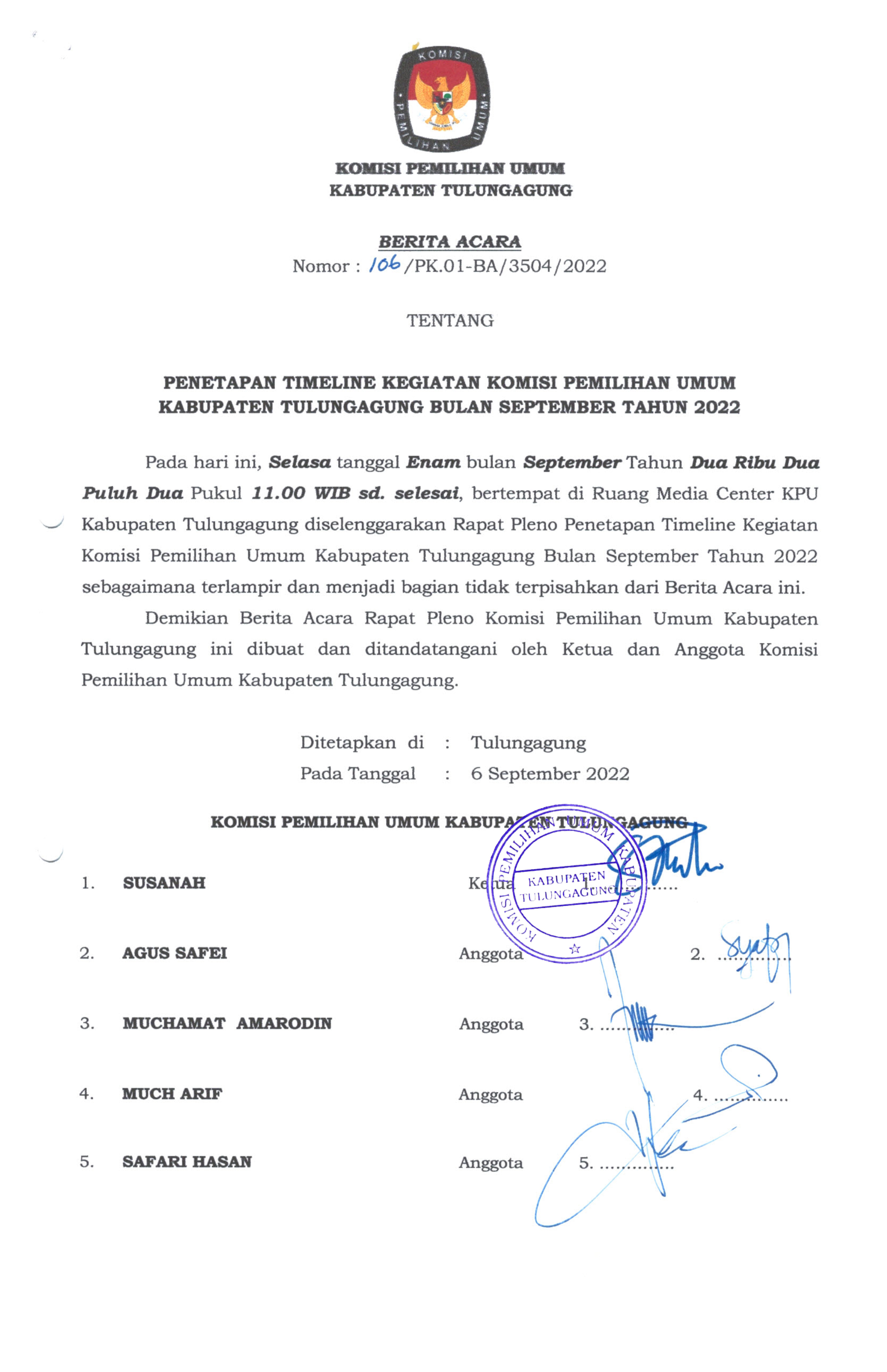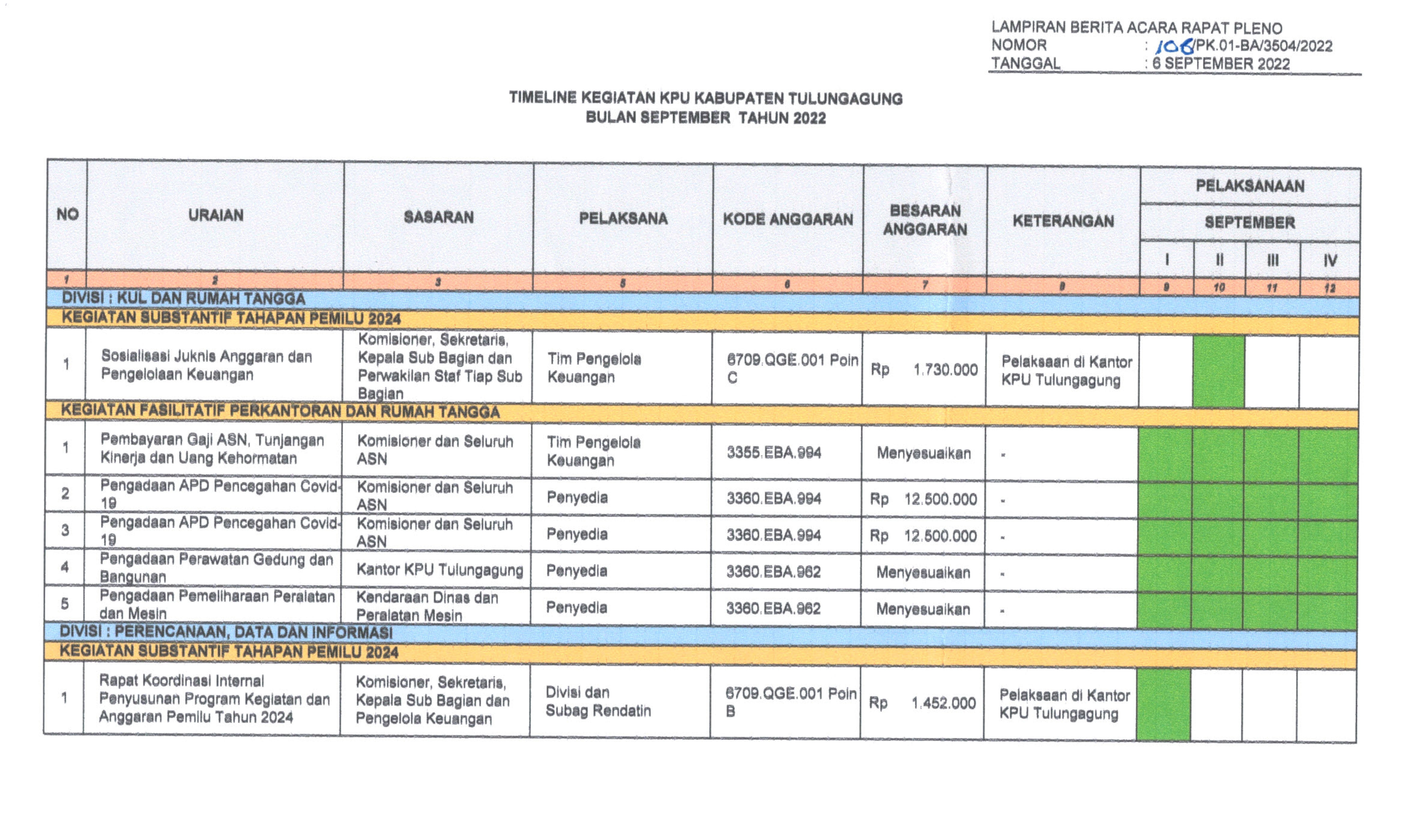 TIME LINE KEGIATAN KOMISI PEMILIHAN UMUM KABUPATEN TULUNGAGUNG BULAN SEPTEMBER TAHUN 2022